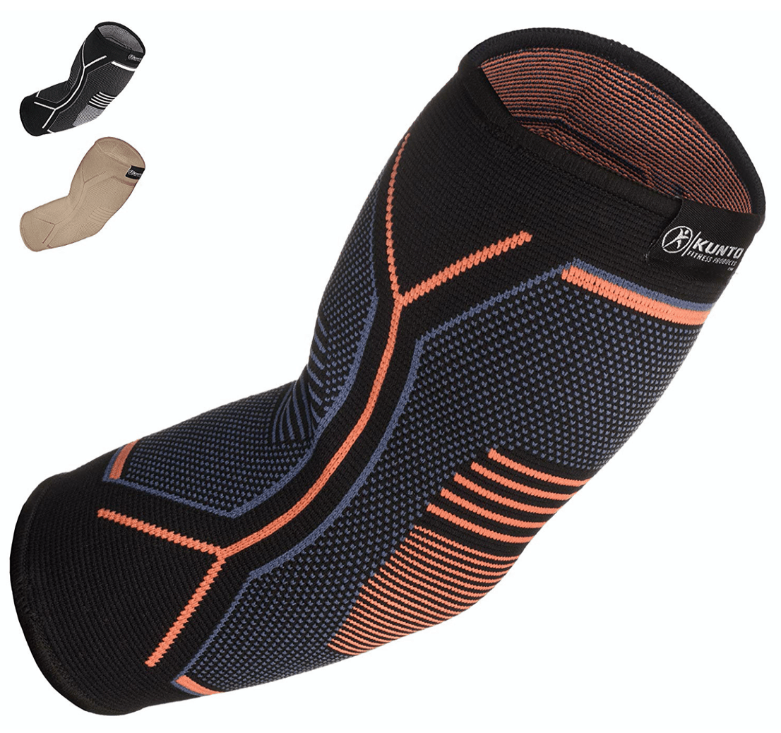 Next on our best tennis elbow brace list is the Kunto Fitness Elbow Brace. Thanks to its unique weave-construction, the Kunto Elbow Brace is both comfortable and reliable – with zero slippage during gameplay.